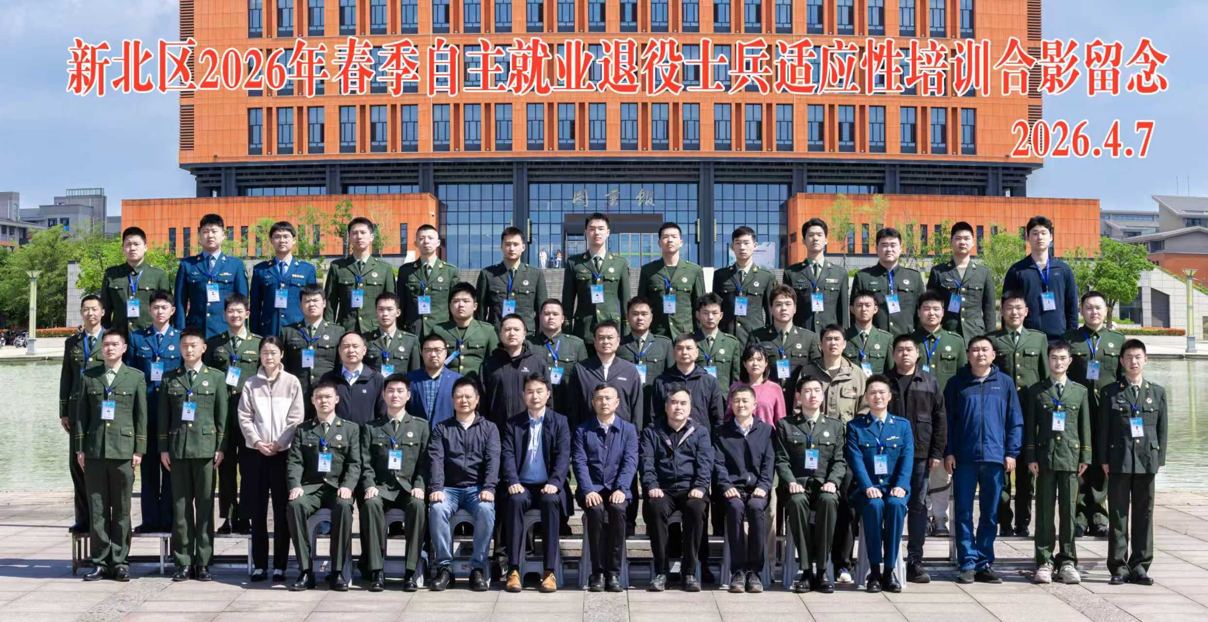 4月7日上午,新北区2026年春季自主就业退役士兵适应性培训开班典礼在我校文新楼辅楼二楼报告厅隆重举行。新北区退役军人事务局局长陶文忠,我校党委常委、副校长刘春节,继续教育学院院长金卫东出席开班典礼,新北区退役军人事务局安置就业处处长蒋建荣主持开班典礼。开班典礼在雄壮的国歌声中拉开帷幕,来自全区各街道、乡镇的人武部负责人及退役军人参加了本次开班仪式。